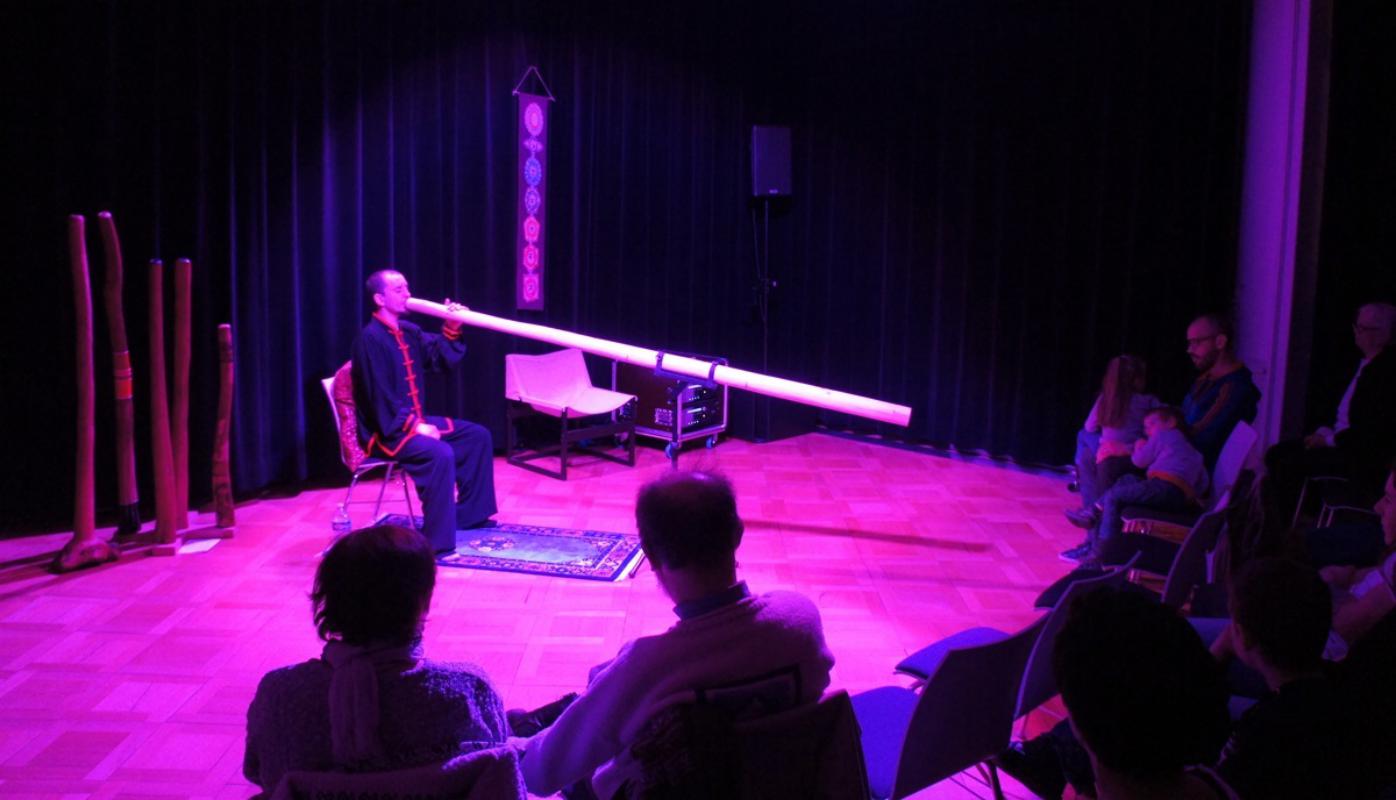 Triton Squad's solo didgeridoo concerts are a sonic journey through several metaphorical stories whispered through the various intoxicating and surprising sounds of these ancestral instruments: long and deep sounds from the night, others powerful and short from the sun , colorful rhythms inviting the journey of a solitary rider on a galloping horse in the middle of an aurora borealis ...